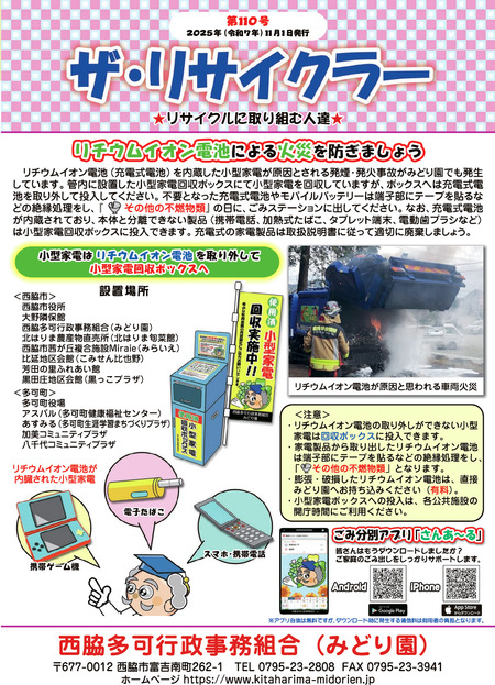 西脇多可行政事務組合みどり園では、活動をよりよく知っていただくための情報ツールとして、広報誌「ザ・リサイクラー」を発行しています。